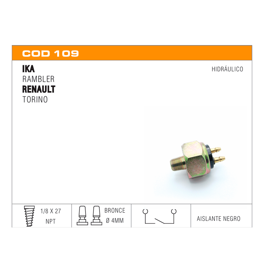 Interruptor de stop Interruptor de retromarcha Interruptor de presión de aceite Interruptor de electroventilador Interruptor de puerta Interruptor de corriente Portalamparas Sensores de temperatura de agua Sensores de presión de aceite eléctrico Termoválvulas de comando carburador Sensores de inyección Conector Sensor de Temperatura Termostatos
