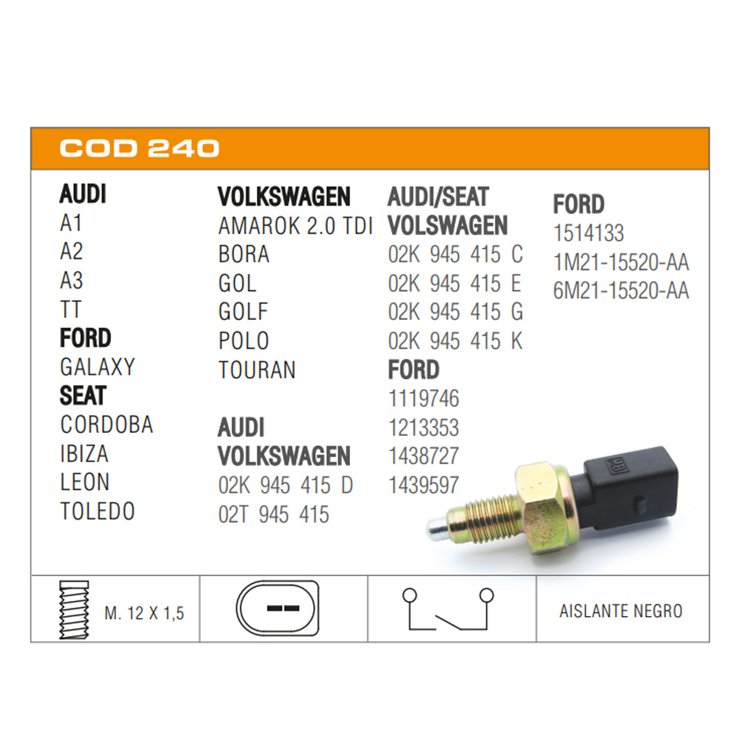 02K 945 415 C, 02K 945 415 E, 02K 945 415 G, 02K 945 415 K, 1119746, 1213353, 1438727, 1439597, 1514133, 1M21-15520-AA, 6M21-15520-AA