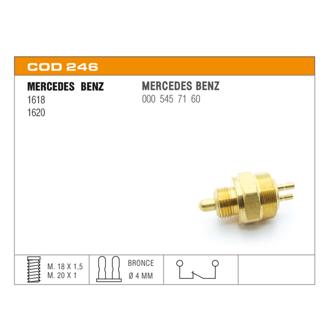 Interruptor de stop Interruptor de retromarcha Interruptor de presión de aceite Interruptor de electroventilador Interruptor de puerta Interruptor de corriente Portalamparas Sensores de temperatura de agua Sensores de presión de aceite eléctrico Termoválvulas de comando carburador Sensores de inyección Conector Sensor de Temperatura Termostatos
