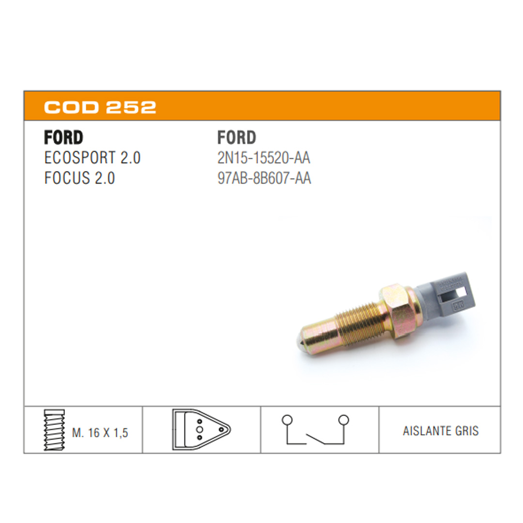 Interruptor de stop Interruptor de retromarcha Interruptor de presión de aceite Interruptor de electroventilador Interruptor de puerta Interruptor de corriente Portalamparas Sensores de temperatura de agua Sensores de presión de aceite eléctrico Termoválvulas de comando carburador Sensores de inyección Conector Sensor de Temperatura Termostatos