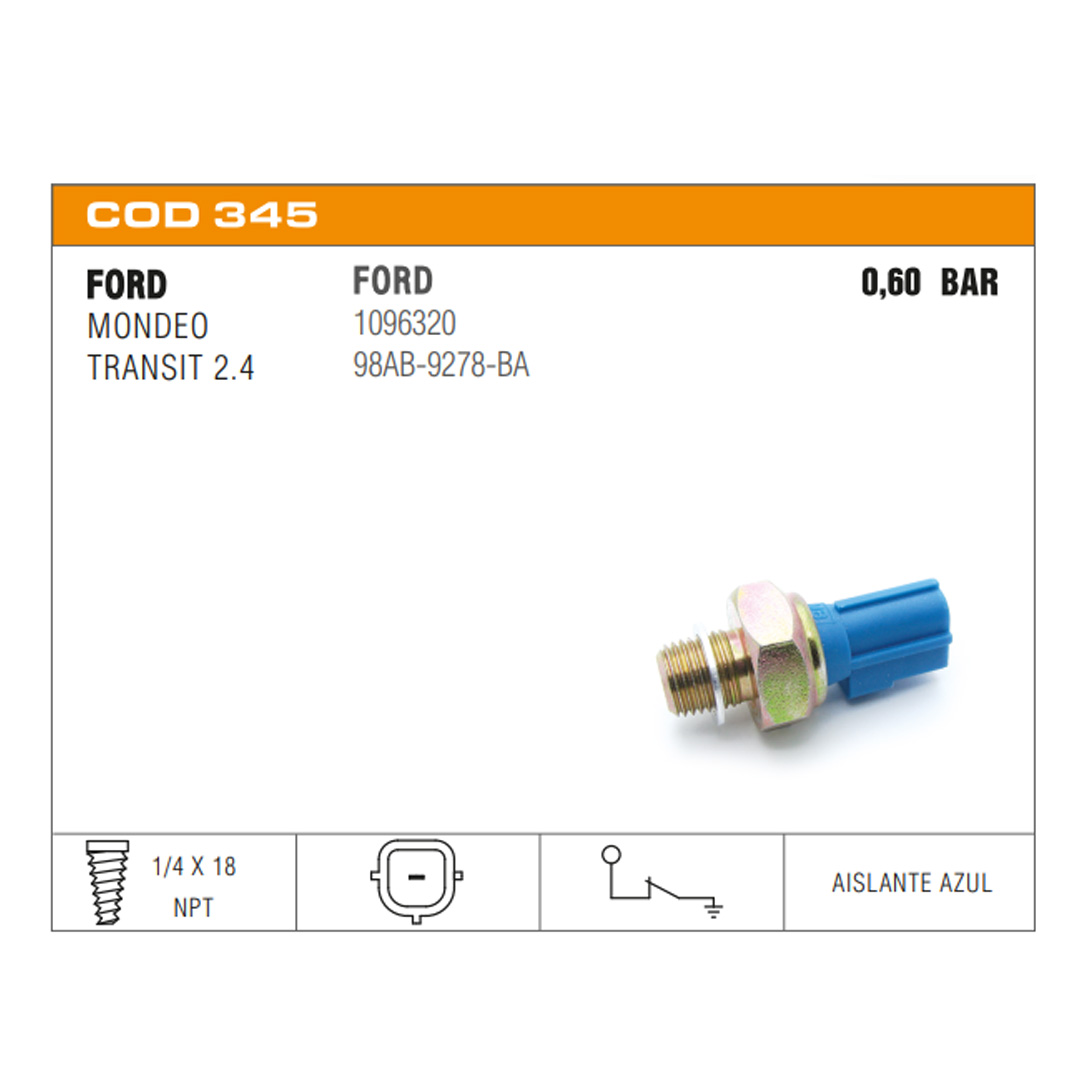Interruptor de stop Interruptor de retromarcha Interruptor de presión de aceite Interruptor de electroventilador Interruptor de puerta Interruptor de corriente Portalamparas Sensores de temperatura de agua Sensores de presión de aceite eléctrico Termoválvulas de comando carburador Sensores de inyección Conector Sensor de Temperatura Termostatos