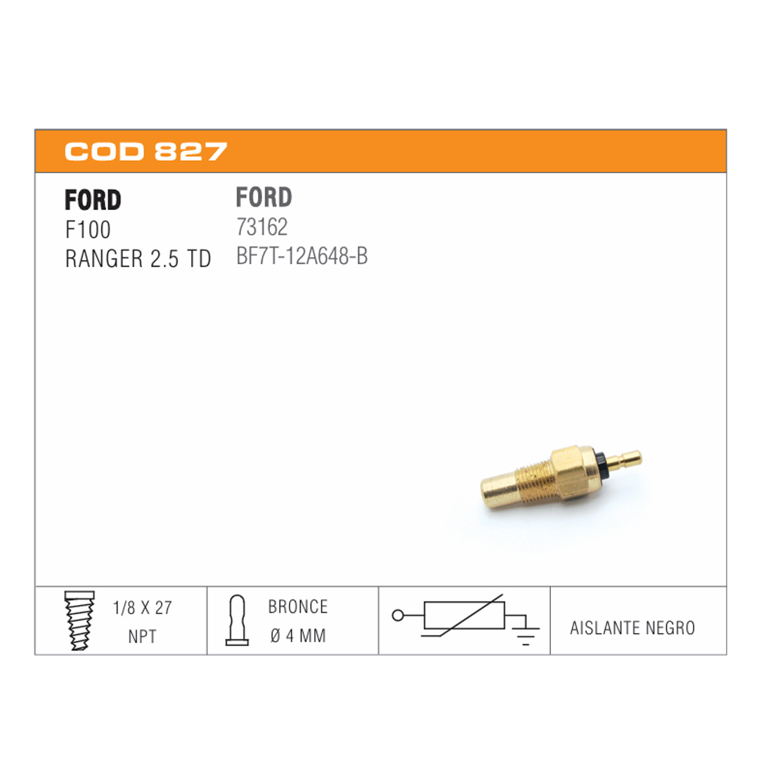 Interruptor de stop Interruptor de retromarcha Interruptor de presión de aceite Interruptor de electroventilador Interruptor de puerta Interruptor de corriente Portalamparas Sensores de temperatura de agua Sensores de presión de aceite eléctrico Termoválvulas de comando carburador Sensores de inyección Conector Sensor de Temperatura Termostatos