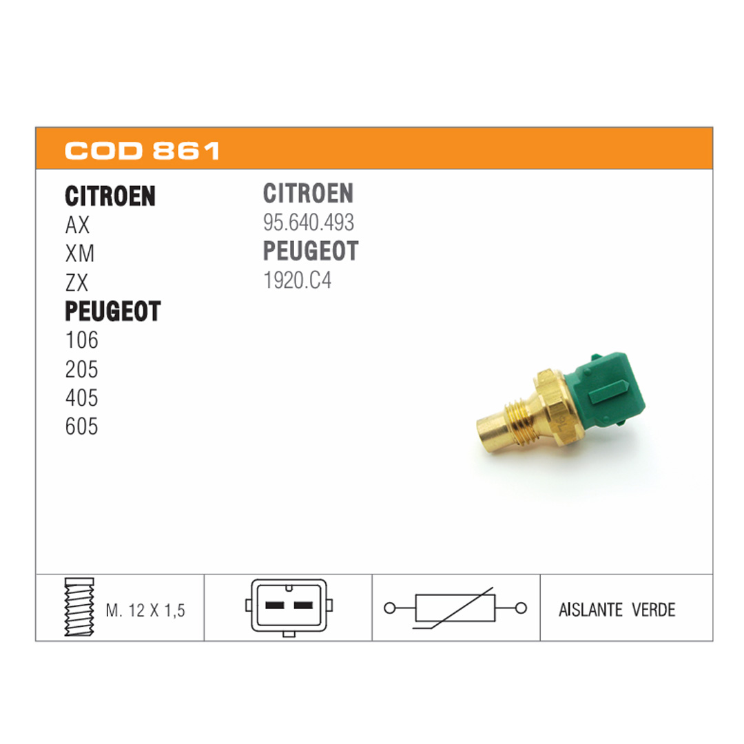 Interruptor de stop Interruptor de retromarcha Interruptor de presión de aceite Interruptor de electroventilador Interruptor de puerta Interruptor de corriente Portalamparas Sensores de temperatura de agua Sensores de presión de aceite eléctrico Termoválvulas de comando carburador Sensores de inyección Conector Sensor de Temperatura Termostatos