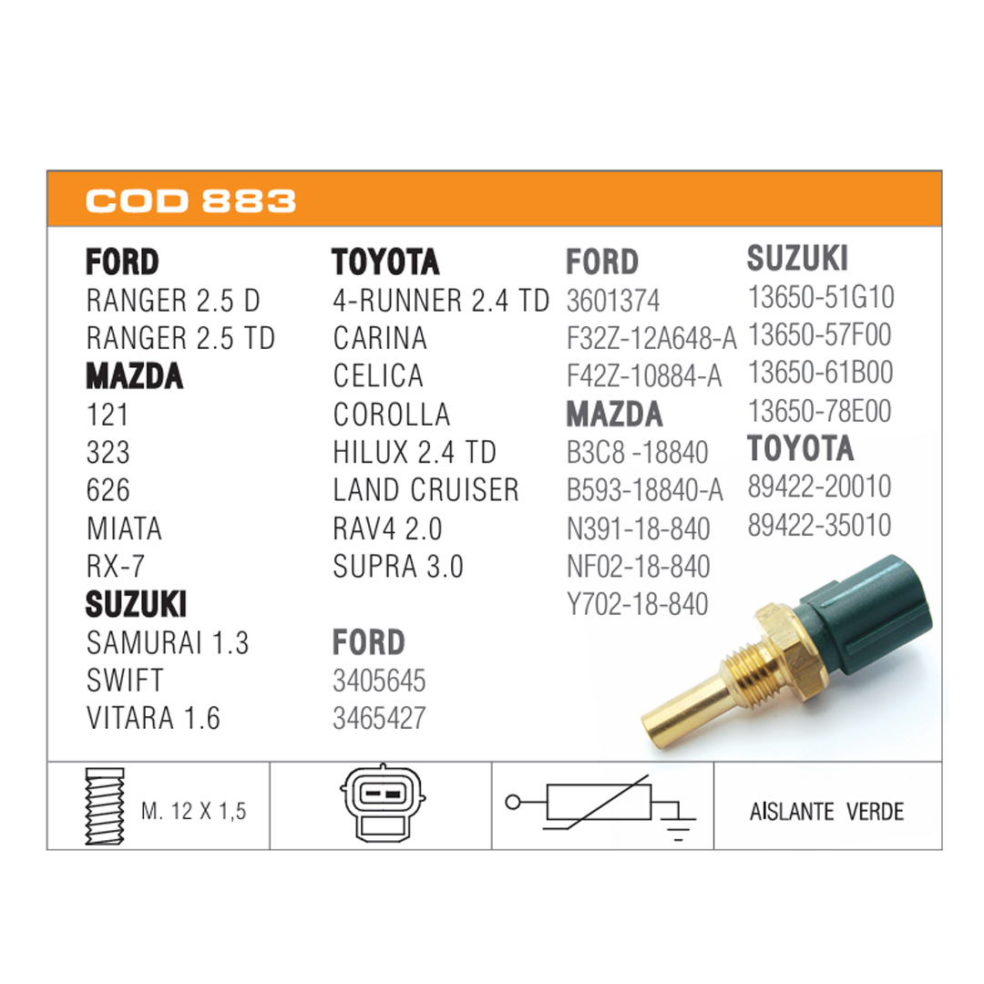 3601374, F32Z-12A648-A, F42Z-10884-A, B3C8 -18840, B593-18840-A, N391-18-840, NF02-18-840, Y702-18-840, 3405645, 3465427, 13650-51G10, 13650-57F00, 13650-61B00, 13650-78E00, 89422-20010, 89422-35010