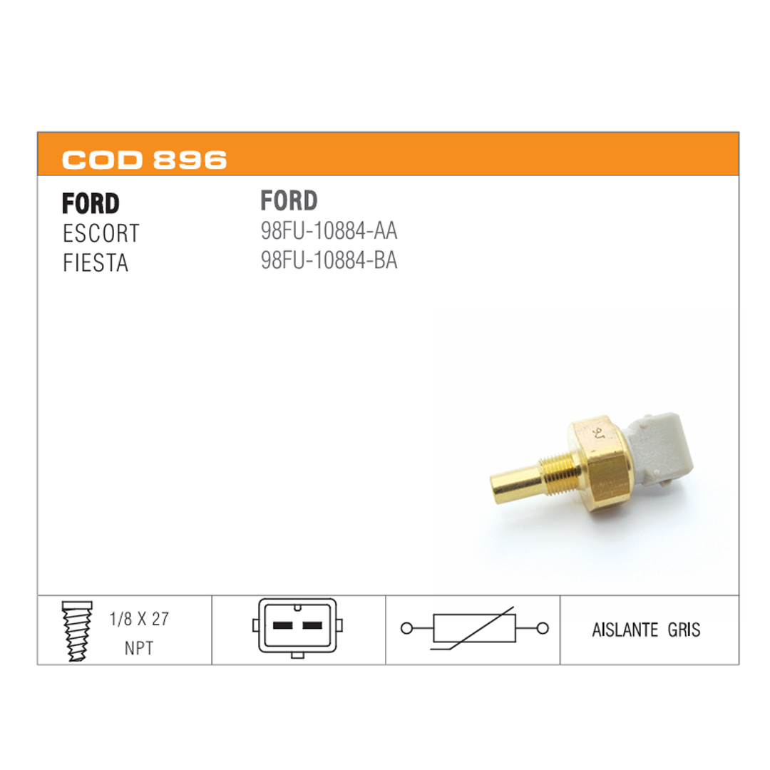 Interruptor de stop Interruptor de retromarcha Interruptor de presión de aceite Interruptor de electroventilador Interruptor de puerta Interruptor de corriente Portalamparas Sensores de temperatura de agua Sensores de presión de aceite eléctrico Termoválvulas de comando carburador Sensores de inyección Conector Sensor de Temperatura Termostatos