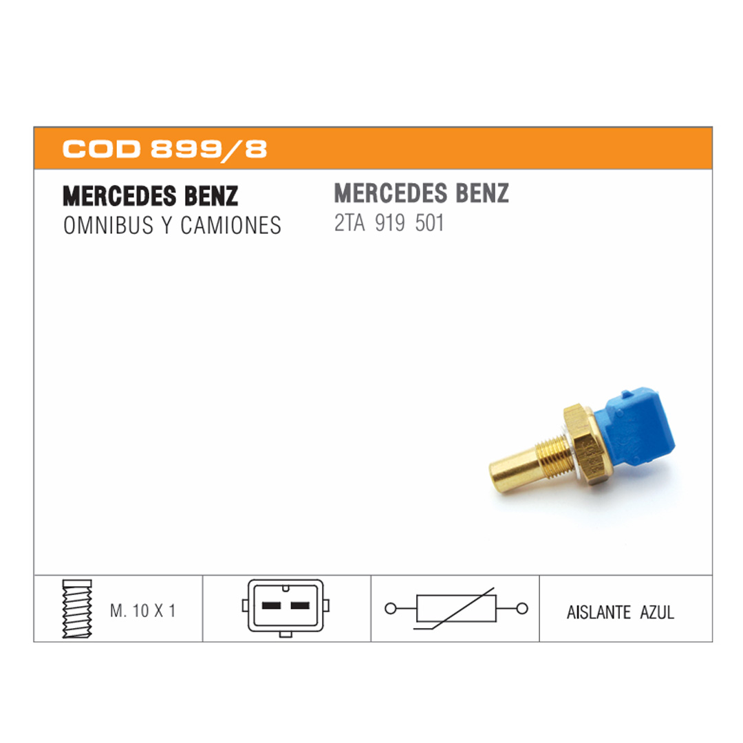 Interruptor de stop Interruptor de retromarcha Interruptor de presión de aceite Interruptor de electroventilador Interruptor de puerta Interruptor de corriente Portalamparas Sensores de temperatura de agua Sensores de presión de aceite eléctrico Termoválvulas de comando carburador Sensores de inyección Conector Sensor de Temperatura Termostatos