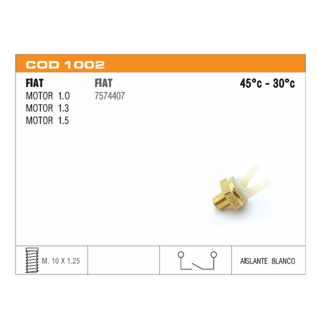 Interruptor de stop Interruptor de retromarcha Interruptor de presión de aceite Interruptor de electroventilador Interruptor de puerta Interruptor de corriente Portalamparas Sensores de temperatura de agua Sensores de presión de aceite eléctrico Termoválvulas de comando carburador Sensores de inyección Conector Sensor de Temperatura Termostatos