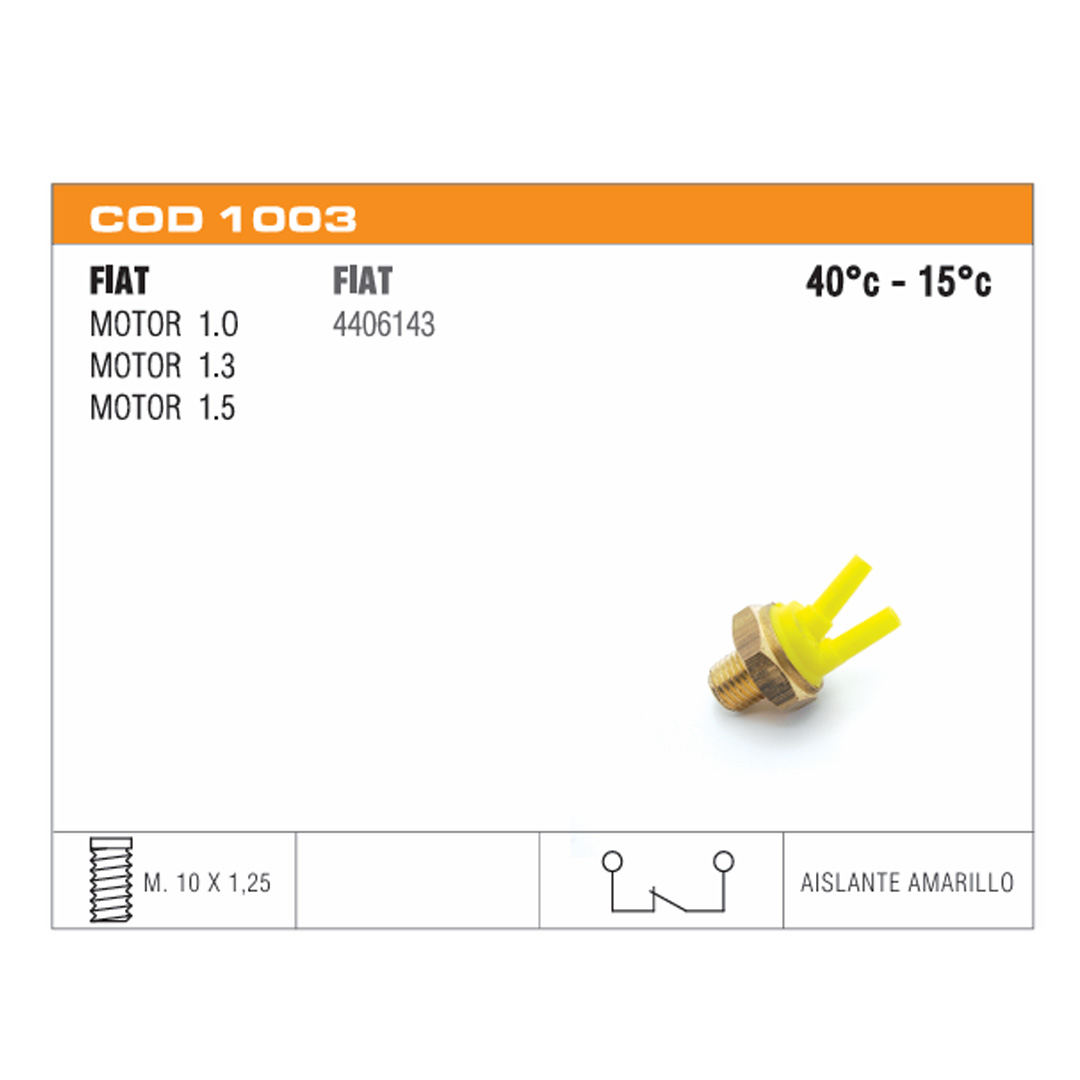 Interruptor de stop Interruptor de retromarcha Interruptor de presión de aceite Interruptor de electroventilador Interruptor de puerta Interruptor de corriente Portalamparas Sensores de temperatura de agua Sensores de presión de aceite eléctrico Termoválvulas de comando carburador Sensores de inyección Conector Sensor de Temperatura Termostatos
