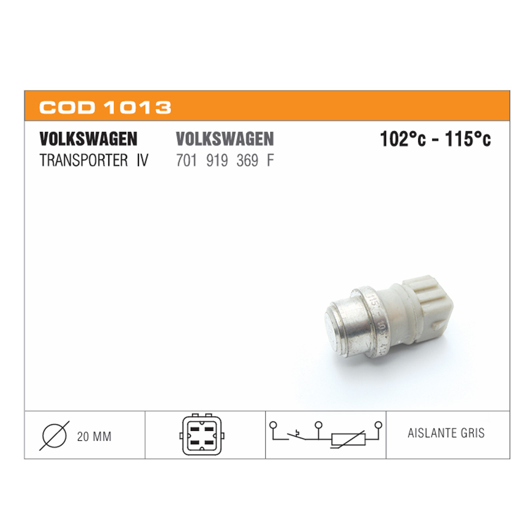 Interruptor de stop Interruptor de retromarcha Interruptor de presión de aceite Interruptor de electroventilador Interruptor de puerta Interruptor de corriente Portalamparas Sensores de temperatura de agua Sensores de presión de aceite eléctrico Termoválvulas de comando carburador Sensores de inyección Conector Sensor de Temperatura Termostatos