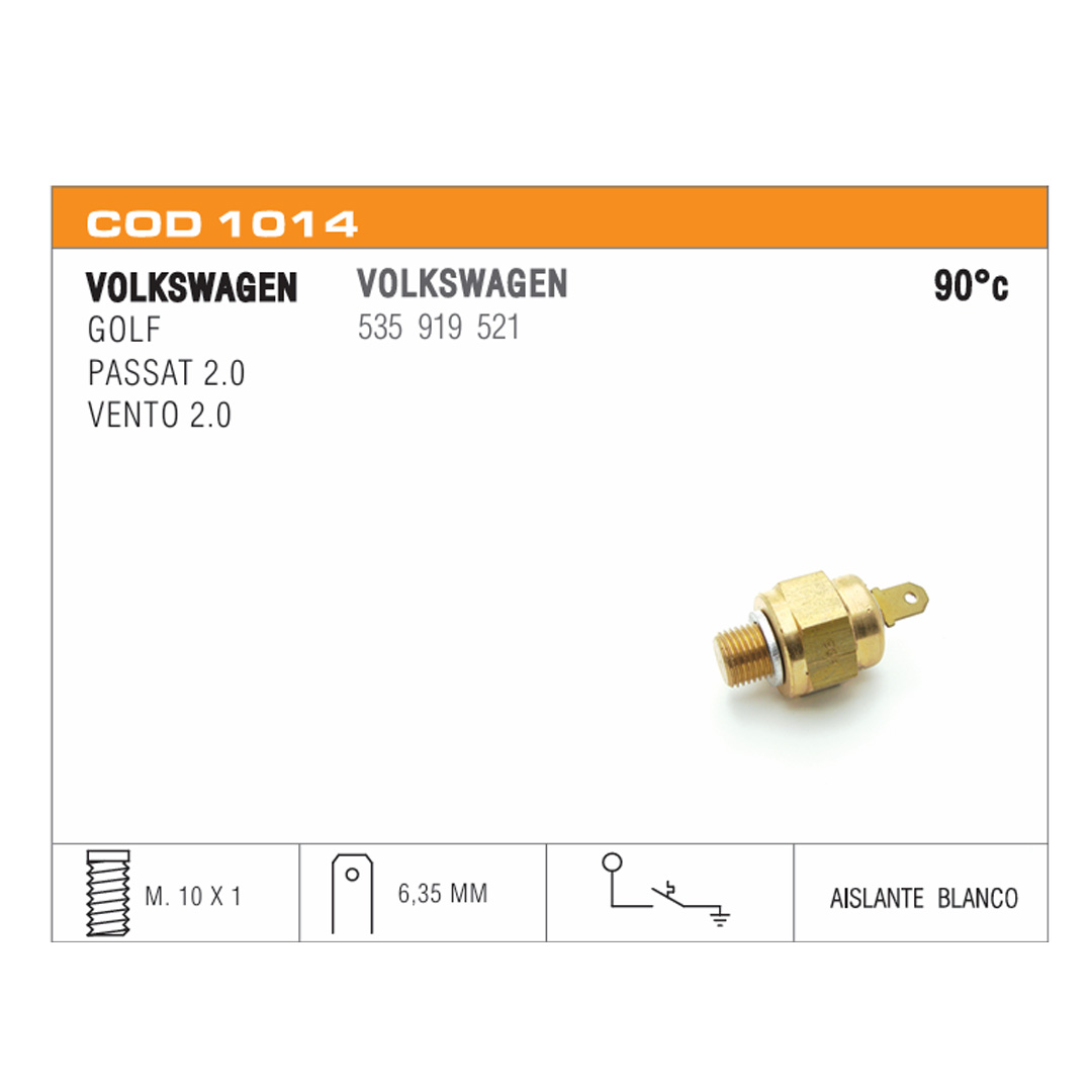 Interruptor de stop Interruptor de retromarcha Interruptor de presión de aceite Interruptor de electroventilador Interruptor de puerta Interruptor de corriente Portalamparas Sensores de temperatura de agua Sensores de presión de aceite eléctrico Termoválvulas de comando carburador Sensores de inyección Conector Sensor de Temperatura Termostatos