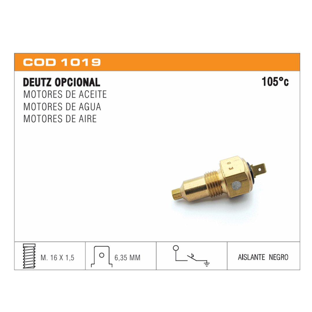 Interruptor de stop Interruptor de retromarcha Interruptor de presión de aceite Interruptor de electroventilador Interruptor de puerta Interruptor de corriente Portalamparas Sensores de temperatura de agua Sensores de presión de aceite eléctrico Termoválvulas de comando carburador Sensores de inyección Conector Sensor de Temperatura Termostatos
