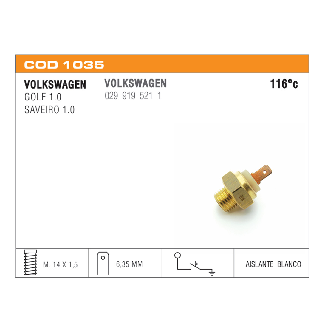 Interruptor de stop Interruptor de retromarcha Interruptor de presión de aceite Interruptor de electroventilador Interruptor de puerta Interruptor de corriente Portalamparas Sensores de temperatura de agua Sensores de presión de aceite eléctrico Termoválvulas de comando carburador Sensores de inyección Conector Sensor de Temperatura Termostatos