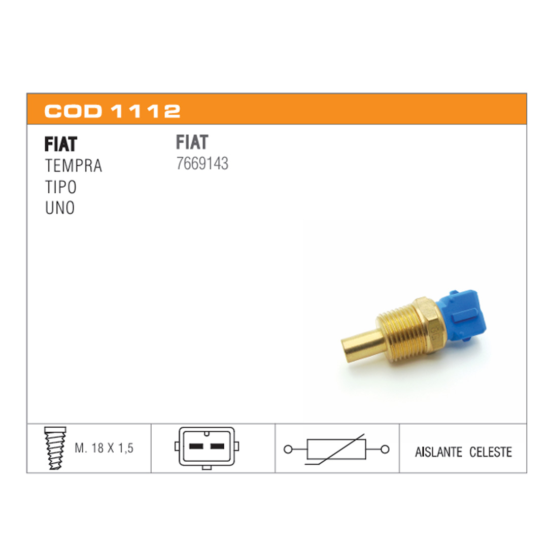 Interruptor de stop Interruptor de retromarcha Interruptor de presión de aceite Interruptor de electroventilador Interruptor de puerta Interruptor de corriente Portalamparas Sensores de temperatura de agua Sensores de presión de aceite eléctrico Termoválvulas de comando carburador Sensores de inyección Conector Sensor de Temperatura Termostatos