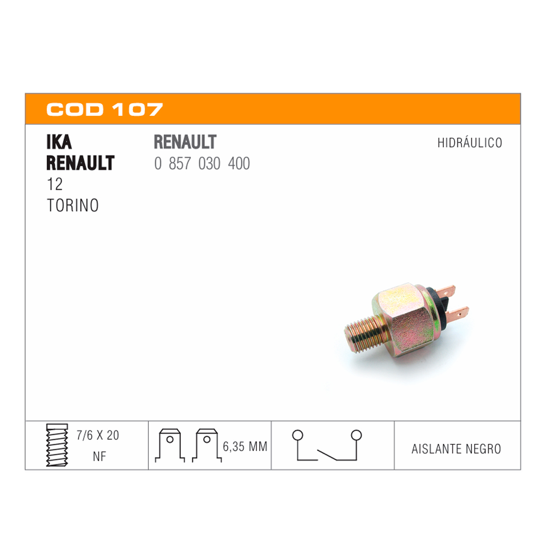 Interruptor de stop Interruptor de retromarcha Interruptor de presión de aceite Interruptor de electroventilador Interruptor de puerta Interruptor de corriente Portalamparas Sensores de temperatura de agua Sensores de presión de aceite eléctrico Termoválvulas de comando carburador Sensores de inyección Conector Sensor de Temperatura Termostatos