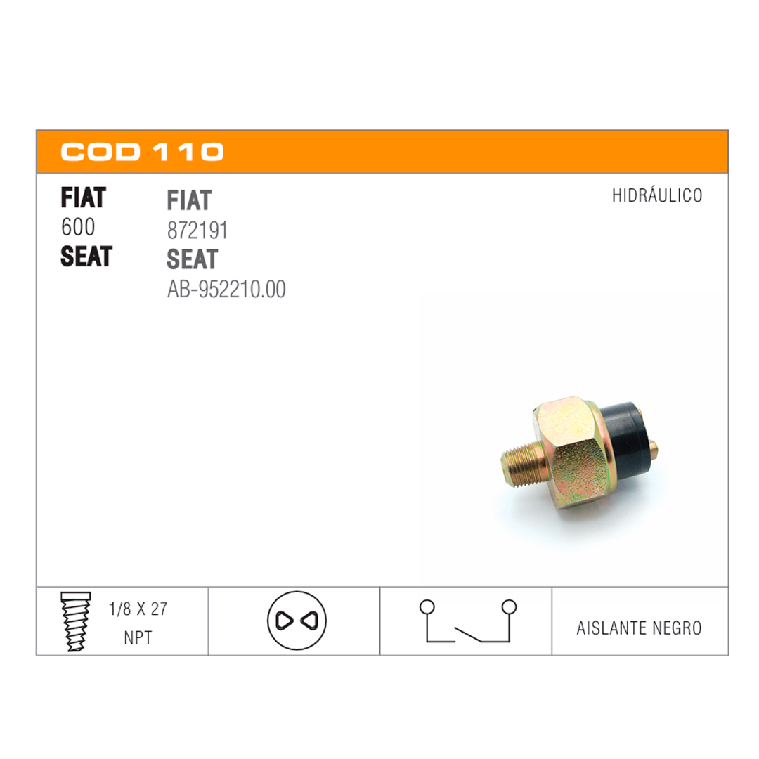 Interruptor de stop Interruptor de retromarcha Interruptor de presión de aceite Interruptor de electroventilador Interruptor de puerta Interruptor de corriente Portalamparas Sensores de temperatura de agua Sensores de presión de aceite eléctrico Termoválvulas de comando carburador Sensores de inyección Conector Sensor de Temperatura Termostatos