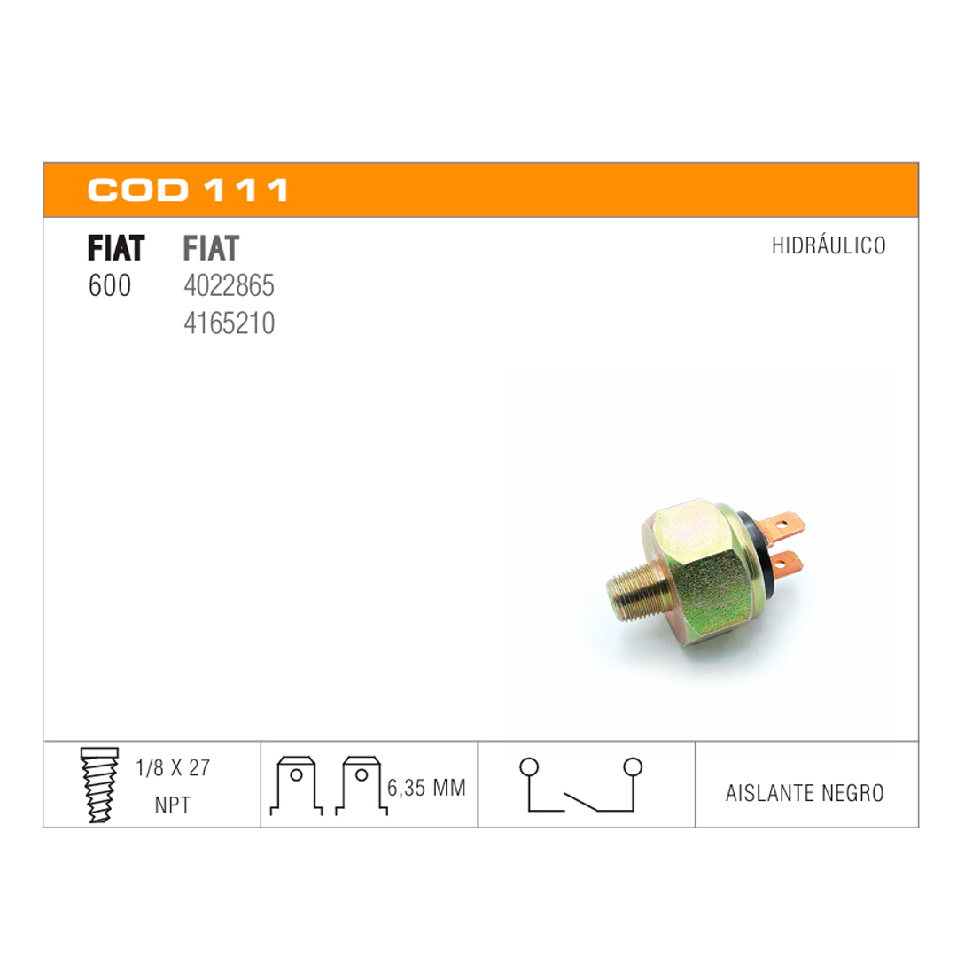 Interruptor de stop Interruptor de retromarcha Interruptor de presión de aceite Interruptor de electroventilador Interruptor de puerta Interruptor de corriente Portalamparas Sensores de temperatura de agua Sensores de presión de aceite eléctrico Termoválvulas de comando carburador Sensores de inyección Conector Sensor de Temperatura Termostatos