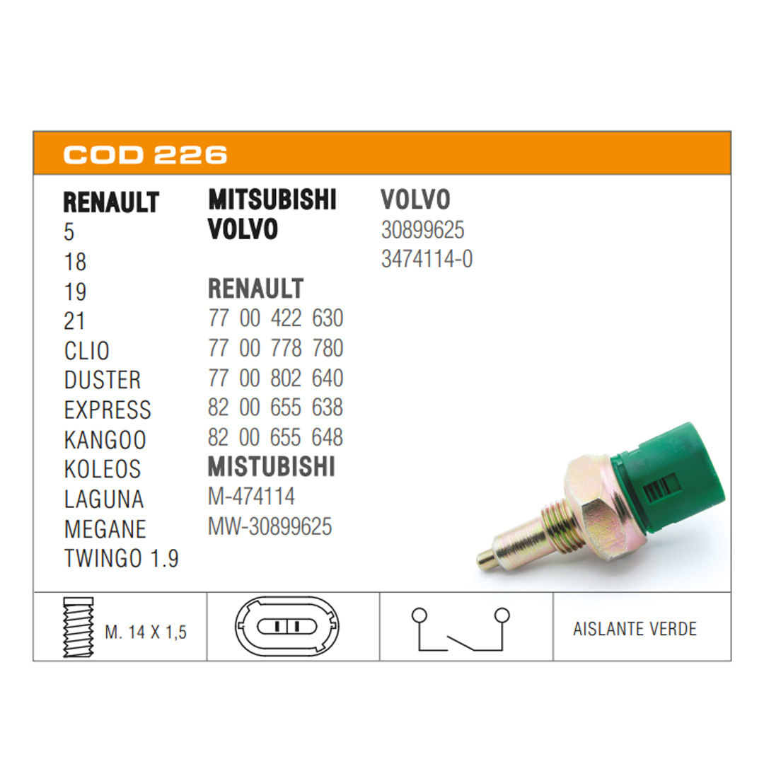 77 00 422 630, 77 00 778 780, 77 00 802 640, 82 00 655 638, 82 00 655 648, M-474114, MW-30899625, 30899625, 3474114-0