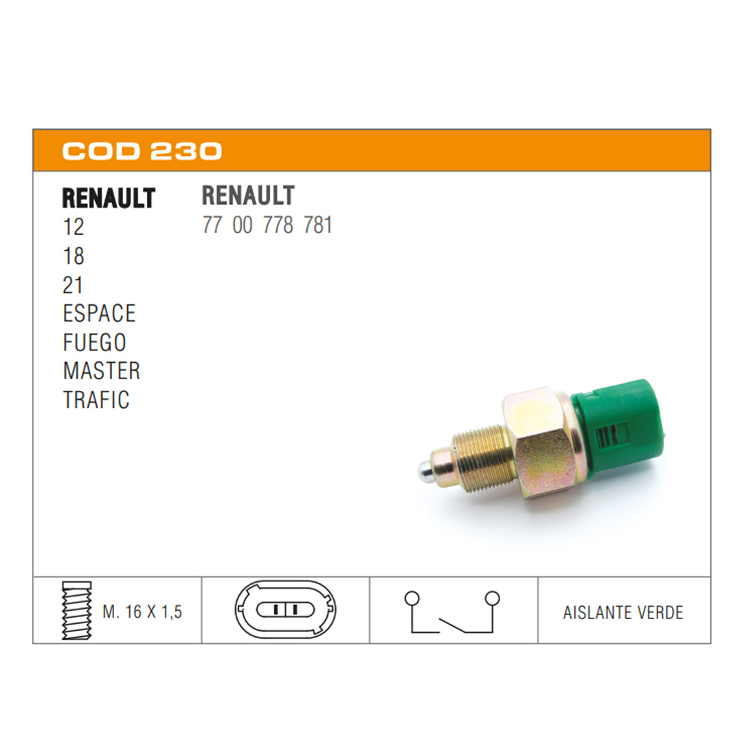 Interruptor de stop Interruptor de retromarcha Interruptor de presión de aceite Interruptor de electroventilador Interruptor de puerta Interruptor de corriente Portalamparas Sensores de temperatura de agua Sensores de presión de aceite eléctrico Termoválvulas de comando carburador Sensores de inyección Conector Sensor de Temperatura Termostatos