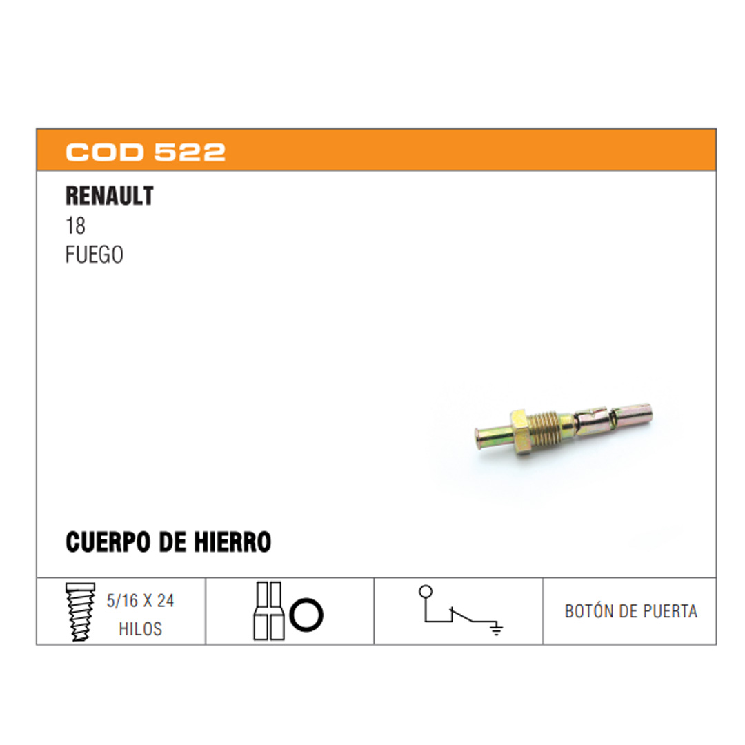 Interruptor de stop Interruptor de retromarcha Interruptor de presión de aceite Interruptor de electroventilador Interruptor de puerta Interruptor de corriente Portalamparas Sensores de temperatura de agua Sensores de presión de aceite eléctrico Termoválvulas de comando carburador Sensores de inyección Conector Sensor de Temperatura Termostatos